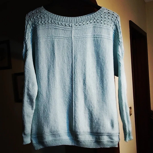 Eu comecei a camisola seguindo as instruções para o tamanho L, mas minha amostra pode me ter induzido em erro...