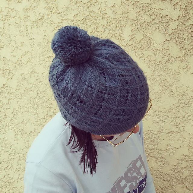 Sequência de diminuição extra com 7 carreiras entre diminuições × 6 (=59 pontos), depois mais 7 carreiras, na carreira seguinte diminua 7 pontos ao redor (=52 pontos) e depois 19 carreiras para o canelado 1/1.