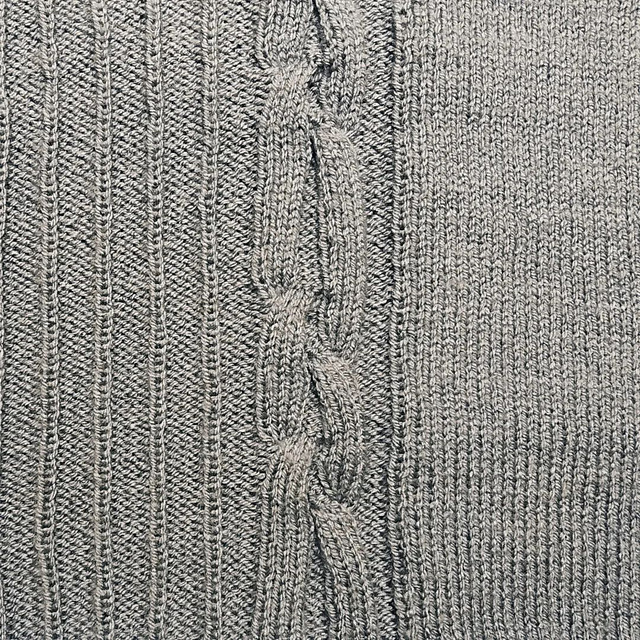 No fim das 2 carreiras seguintes, montar 9 malhas (cabele cast on) = 105 malhas. Continuar em canelado (1 malha meia/ 1 malha liga) com 1 malha em ponto mousse de cada lado da peça (continuar o canelado como antes).