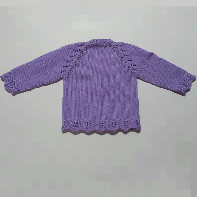 Aumenta-se o número de malhas das frentes, das costas e das duas mangas e tricotam-se os aumentos em ponto meia.